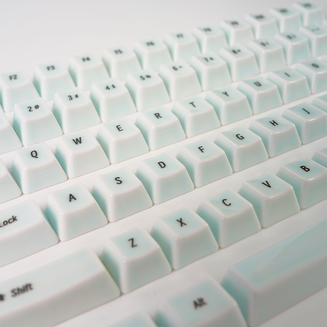 .Shifting glaze colors — warm and jade-like: The beauty of ceramic keycaps lies in the glaze. Through different glaze formulas and firing techniques, they can achieve effects like jade-like translucence, ruyao-style textures, or blue-and-white porcelain patterns. Subtle kiln variations mean every batch—and even every keycap—may be slightly different, giving each set uniqueness and collectible value.