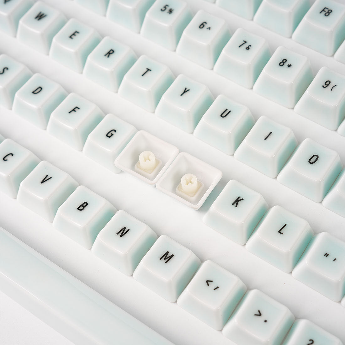 .Premium Kaolin Ceramic Craftsmanship: Each keycap is made from refined kaolin (alumina ceramic) and fired at high temperatures, resulting in a jade-like cool, dense texture. The ceramic glaze adds a smooth, elegant finish that is highly resistant to wear, shine, and oil buildup.