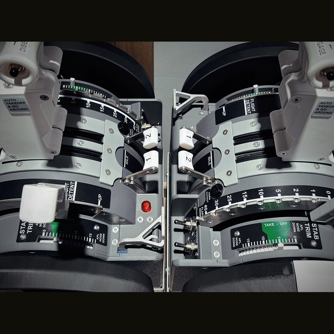 .Damped Mechanical Feedback: Resistance tuning is applied to throttle levers, speed brake, and trim wheel, offering controlled movement and clear tactile response.