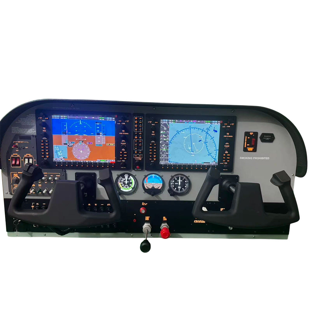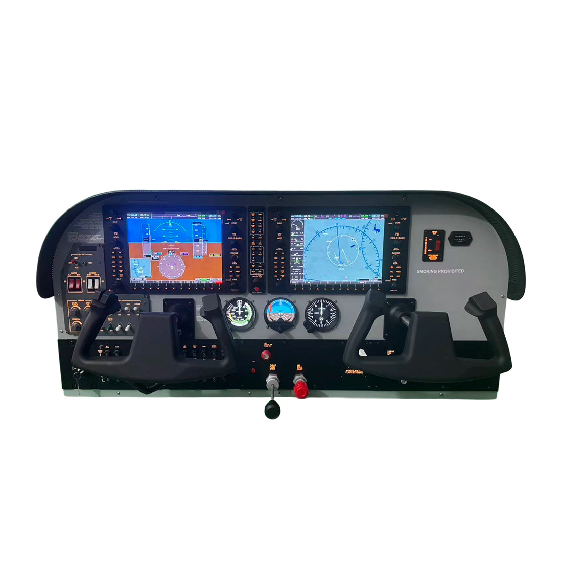 Dual Yoke General Aviation Flight Simulator Setup: Designed with a dual control yoke structure that recreates a realistic cockpit control layout. The simulator can be placed directly on a desk or workstation, creating an immersive flight operation environment.